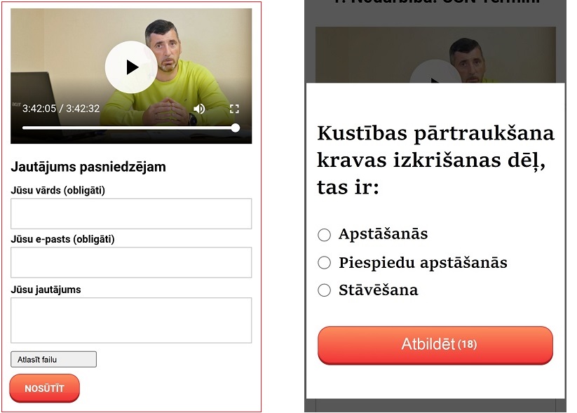 Videolekcijas gaitā periodiski tiks uzdoti jautājumi par apgūstamo tēmu.