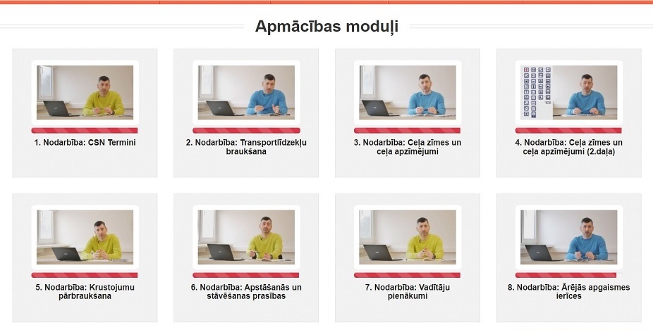 Katras nodarbības beigās jānokārto tests ar 10 jautājumiem . Atļauta 1 kļūda. Trīs reizes nenokārtojot moduļa tests, attiecīgais modulis jāapgūst no jauna.